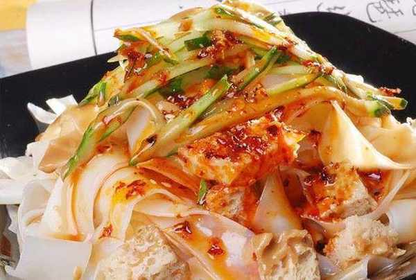 陜西涼皮已經被列入省級非遺,當地正宗的涼皮除瞭料汁是一絕外,配料也給力,有面筋、黃瓜、花生米、豆芽等,涼皮口感爽滑,搭配上清爽的黃瓜、豆芽、濃厚的辣椒油,饞的人忍不住流口水。