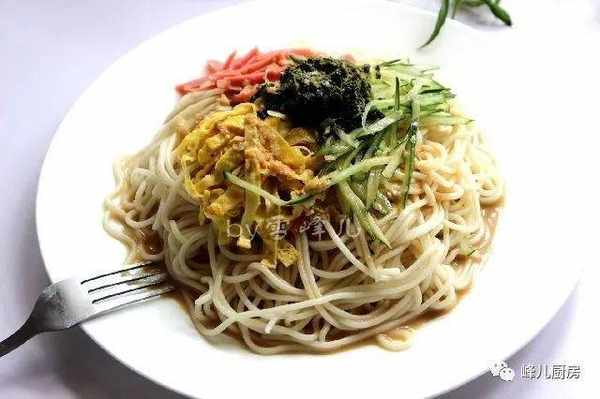 7、爽口好吃的麻汁拌面涼面就做好瞭哦。
