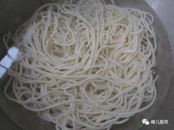 4、鍋裡放水燒開,加入面條煮熟,撈出過涼水。