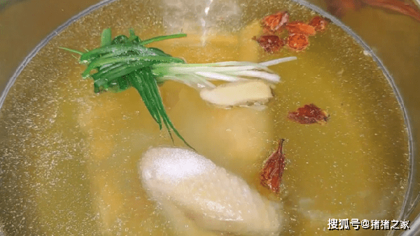 3.往鍋中加入一些蔥薑、黃酒去腥、兩勺鹽,保持最小火煮15分鐘左右,時間到後我們關火,蓋上蓋子燜20分鐘。