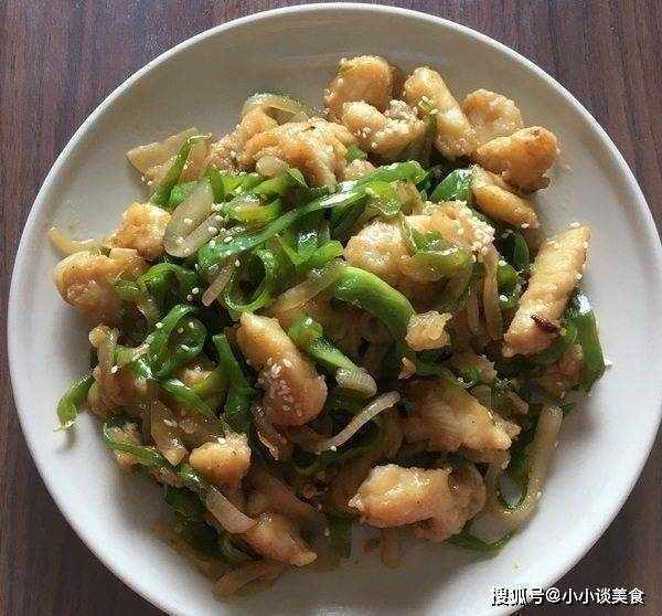 青椒炸龍利魚:龍利魚自然解凍後,切成寬條,加入少許現磨黑胡椒粉、少許現磨蒜蓉、蠔油、生抽和生油,醃制均勻,鍋中油燒熱,將煮熟的魚塊滑出,撈出,鍋中放剩餘的油,加入切好的大蒜和洋蔥文火爆香,加入青椒,加少許鹽調味,放入魚塊魚,加少許生抽上色。如果你有香菜,可以在上菜前加入幾枝香菜,以增強其香氣。