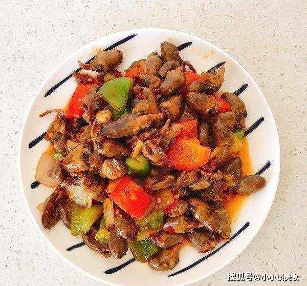 雞心半熟時,加入甜椒翻炒,然後根據個人口味加入老幹媽,用少許豆瓣醬翻炒,最後淋上生抽即可上桌。