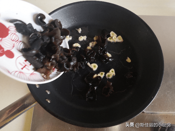 3. 加入焯好的黑木耳進鍋翻炒兩下;