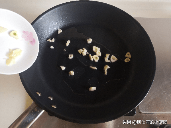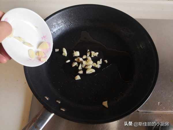 3. 燒熱鍋放入少許油,將少許蒜末放進鍋中煸炒出香味;