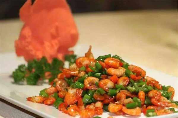 河蝦、尖椒適量、蒜米適量、醬油適量、宴友食用油、蠔油適量、味精適量、白砂糖適量、鹽適量、幹辣椒適量