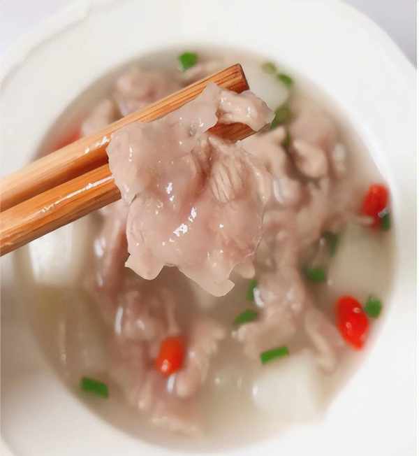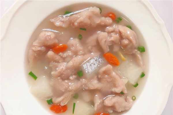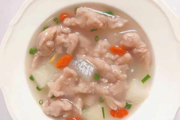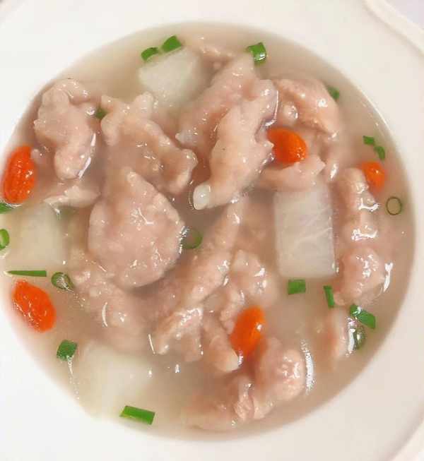 冬瓜滑肉枸杞湯是春季愛喝的鮮湯,主要用冬瓜和瘦肉制作而成,肉片非常嫩滑,湯汁非常好喝,鮮美倍增,為身體提供各種營養,清熱利濕,促進食物的消化,早食早受益。