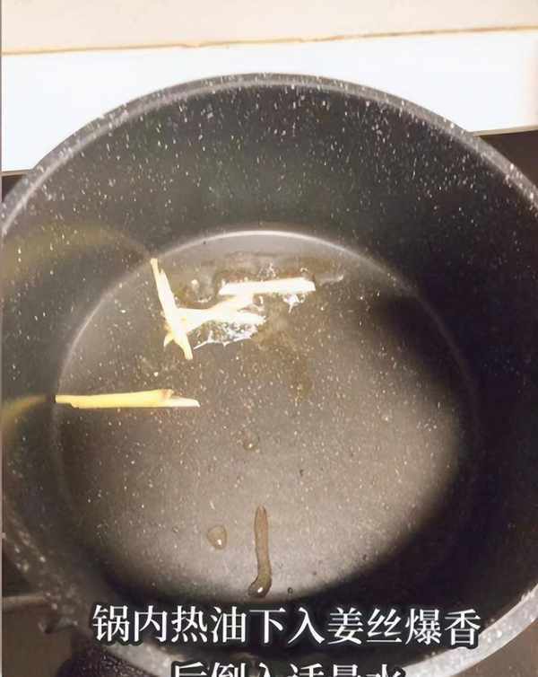 第四步:鍋中慢慢燒熱,加上一勺豬油融化開,加上一些薑絲煸炒20秒,倒入一些冬瓜丁煸炒一會兒。