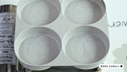 不粘鍋噴油,往鍋中舀入攪好的蛋糊。我自己比較喜歡用這種造型鍋,比較省事兒,直接幫你塑形瞭。