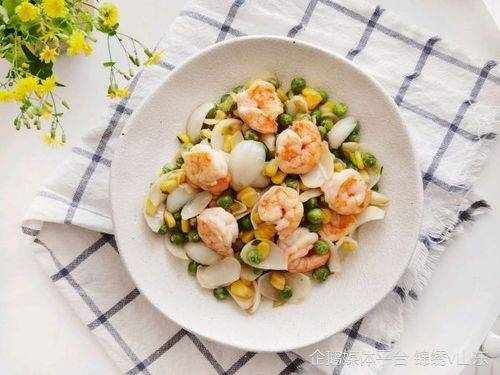 食材:豌豆粒,鮮百合,蝦仁。