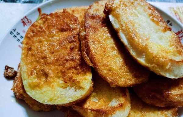 於是,我就直接拿吃不完的包子,到廚房加工改變瞭口味,又香又脆,同事都搶著吃呢!做法也簡單,這裡給大傢分享一下做法的過程吧!