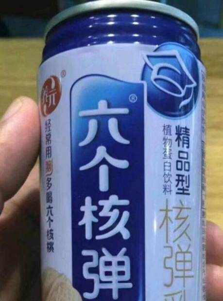 六個核桃,這是一款比較受歡迎的飲品,逢年過節走親戚串門的時候,六個核桃也是許多人會選擇的禮品,不僅拿著很有面,口感喝起來也特別好喝,沒想到六個核桃也做出瞭山寨版,直接把六個核桃改成瞭六個核彈,這也太侮辱智商。