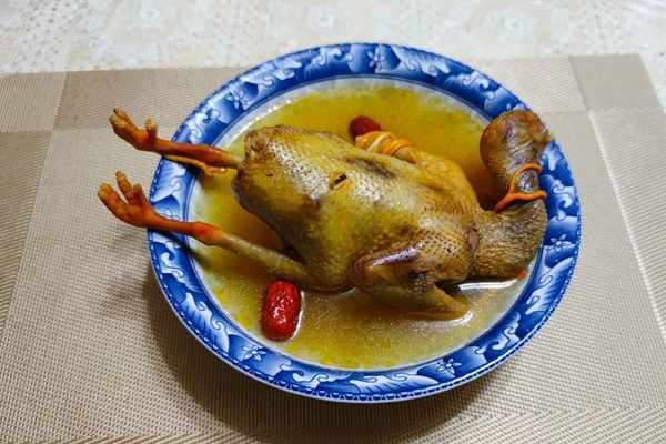 主要食材:老鴿子一隻、蟲草菇、紅棗、黃酒、鹽、蔥薑、胡椒粉