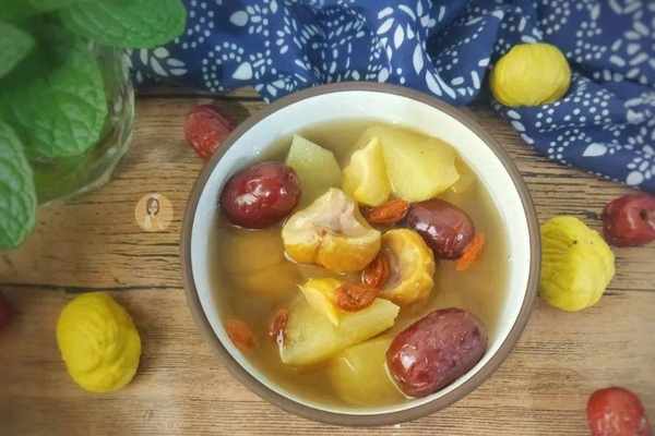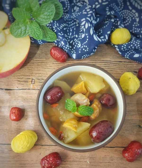 栗子軟糯,蘋果甜脆,紅棗甜蜜,真好吃。