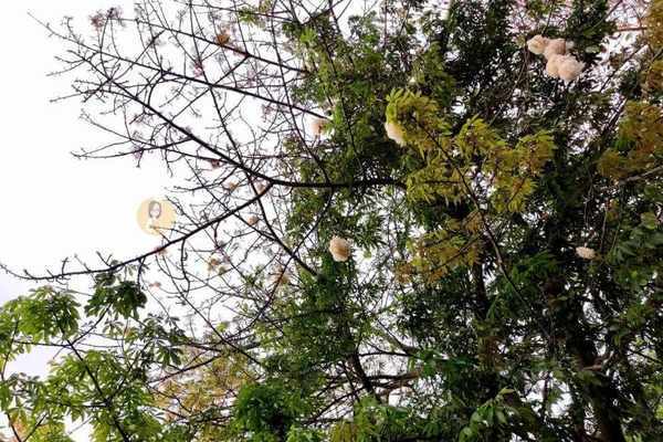 看,木棉花“炸開”瞭,像一個個的“白燈泡”掛在樹上。