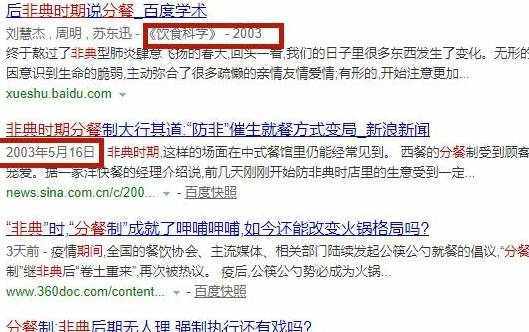 網頁上仍舊可以搜索到“非典”時期關於分餐制的新聞