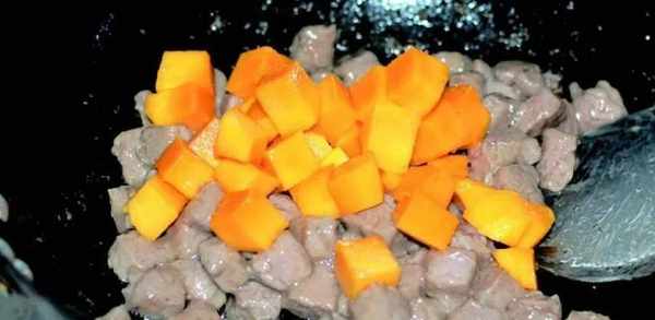 5、最後倒入芒果丁炒勻就可以出鍋品嘗瞭,做法很簡單,喜歡吃牛肉的朋友可以試試這個新做法喲!