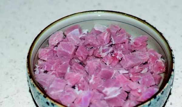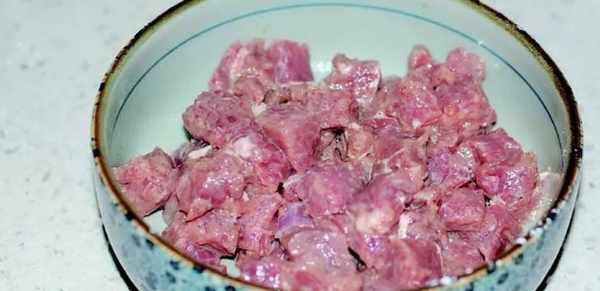 1、首先將牛肉切成小方丁,用清水泡去血水。