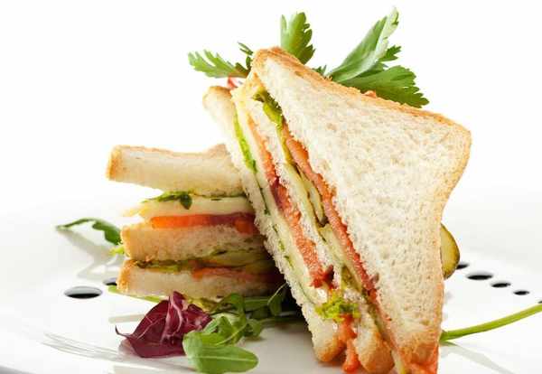 在傢自己做簡單的三明治,可以用超市買來現成的吐司片,隨意添加自己喜歡的食材,傢裡沒有面包機也能做。