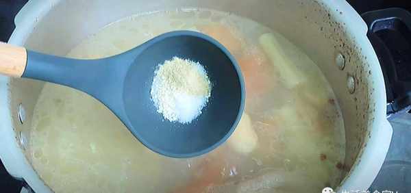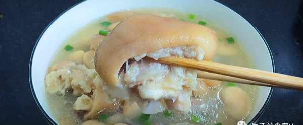第6步、豬蹄燉好瞭,再加上一點食鹽、雞精、胡椒粉調味,把調料攪拌均勻就可以出鍋瞭。