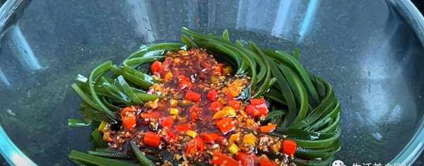 原料:海帶絲,蒜米,辣椒,白芝麻