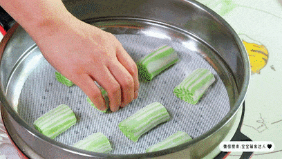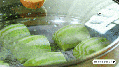 *我這兒用的就是菠菜汁兒,你們用南瓜泥、甜菜根粉、胡蘿卜汁、紫甘藍汁也都可以做。