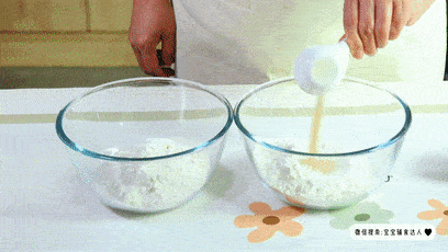 分別給它們攪成絮狀,再揉成光滑的面團。