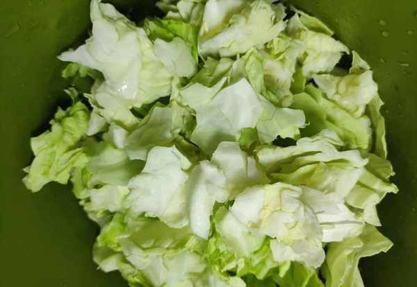 1.備好的包菜洗凈,洗凈後掰成小塊放在一旁備用;