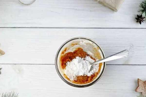 4.倒入玉米淀粉。機智如我,又可以少洗一個碗瞭。