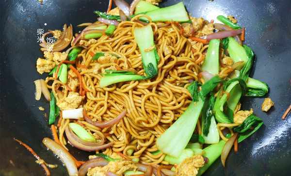 【食材】面條、雞蛋、青菜、洋蔥、胡蘿卜、青蒜苗、鹽、老抽、生抽、蠔油