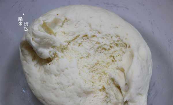 1,400克面粉加4克酵母、230克溫水攪拌成面絮,揉成面團,密封醒發至2倍大。