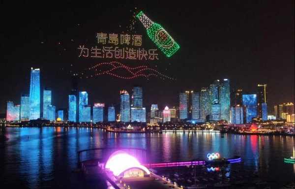 “相約時尚青島”,必是離不開溫潤的海風和沁人的啤酒香。夜幕降臨,青島浮山灣畔遊人如織。在天與海之間,上千架無人機組成的巨幕青島啤酒光影升騰而起,與城市樓宇燈光秀交映配合,金色酒液緩緩傾註,在天與海之間演繹出“青島啤酒,為生活創造快樂!青島與世界幹杯!”千機競飛,光影交錯,為市民、遊客呈現出夜空下璀璨的城市光影大秀。“真的是流連忘返,太美瞭!”欣賞著千機秀和燈光秀,來青島旅遊的李先生連聲贊嘆。
