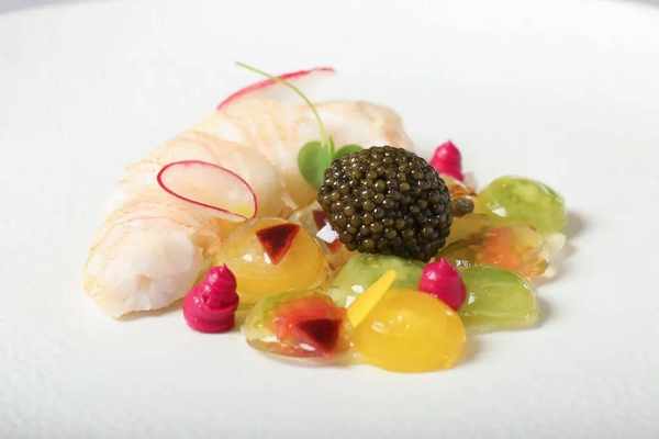 澳洲巖龍蝦,時令蔬菜,達氏鰉鱘魚子醬