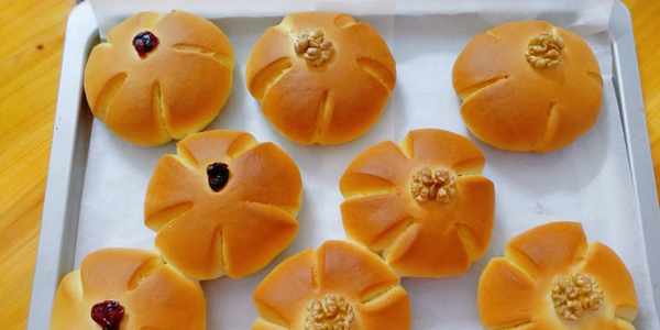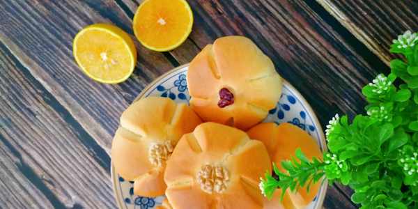 時間到,好吃好看的核桃面包出爐瞭,像一朵花,小孩特別喜歡,香噴噴的特別愛吃。