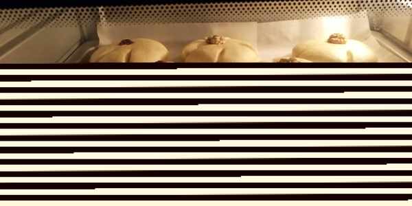 第13步:烤箱上下火160度預熱3分鐘,把面包生坯送入烤箱烤20分鐘。