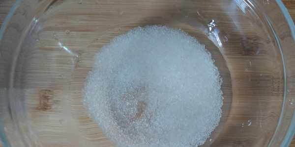 第2步:把水倒入糖碗瞭,攪拌至白糖化開成糖水。