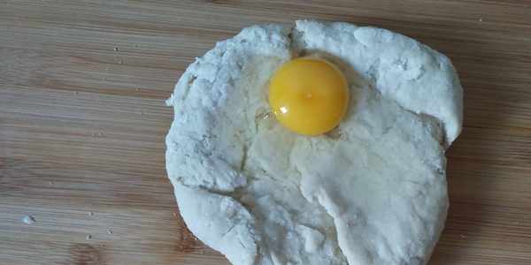 第4步:把雞蛋也搓入面團裡。
