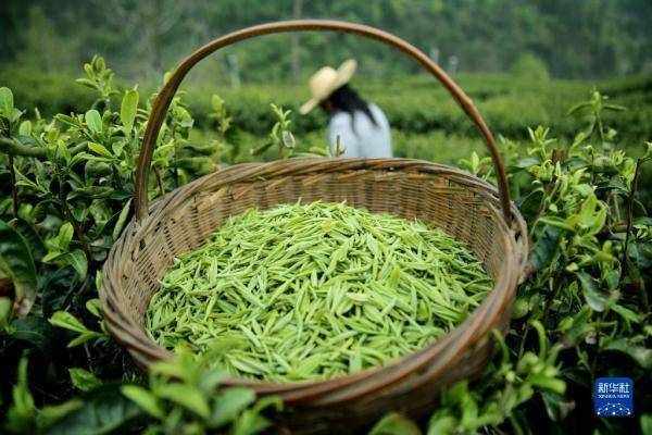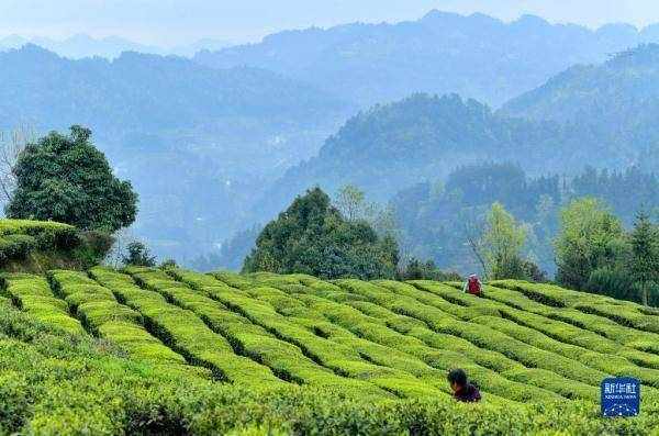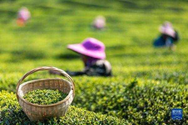 4月2日,茶農在湖北省宣恩縣萬寨鄉的茶園裡采摘茶葉。 新華社發(宋文 攝)