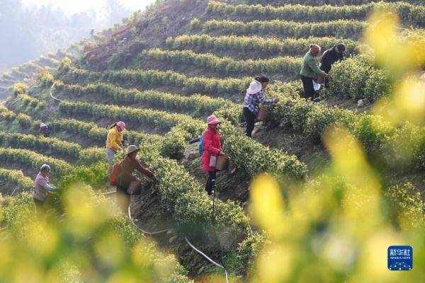 清明臨近,茶農們抓住有利時機上山采茶,茶園裡處處是一片繁忙景象。 新華社發(夏鵬飛 攝)