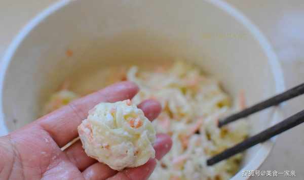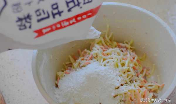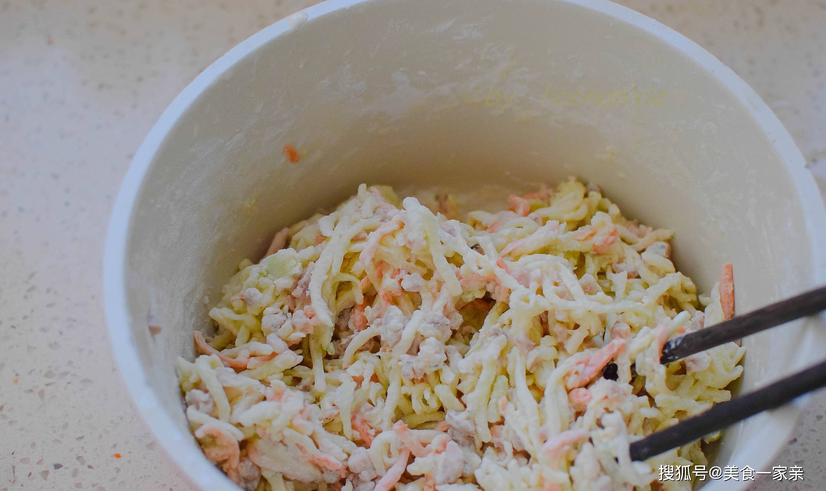 蘿卜絲能捏成團的狀態就可以瞭,酌量加一點兒水。
