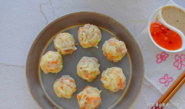 用蘸料搭配蒸好的丸子不限於用泰式甜辣醬和沙拉汁,黃豆醬、蒜泥汁、蕃茄醬都可以用。還可以炒個肉末醬或者煮個蠔油汁配著吃也很好。