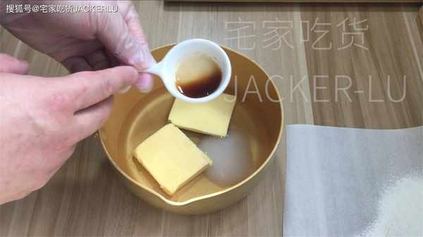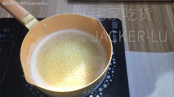 2、我們開始做泡芙體,清水200克、無鹽黃油100克、鹽3克、白砂糖20克、香草精3克,開火煮沸10秒,然後關火。