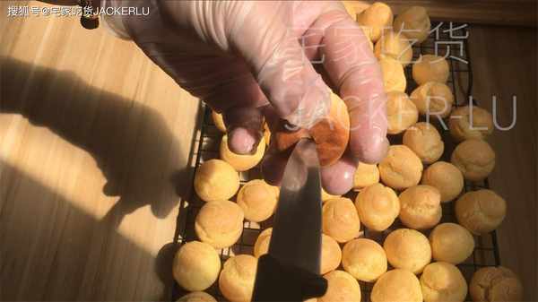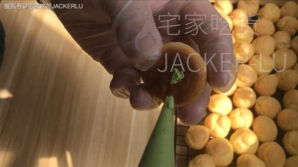 14、把冷卻的泡芙底部戳個小洞,擠入奶油即可。