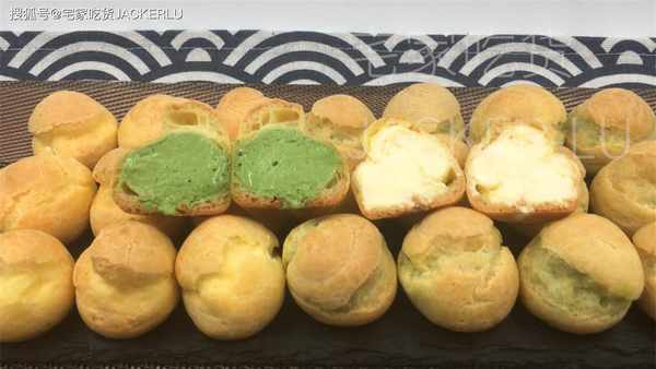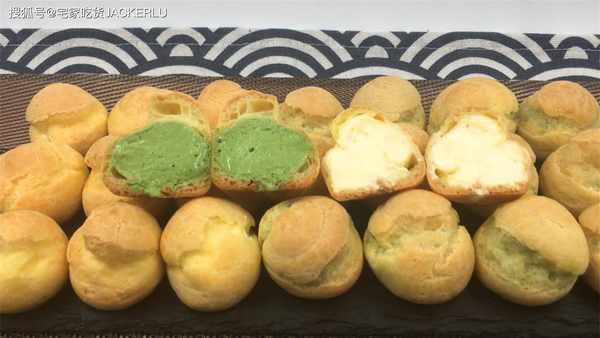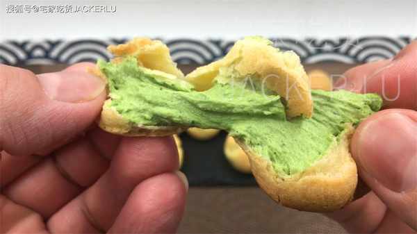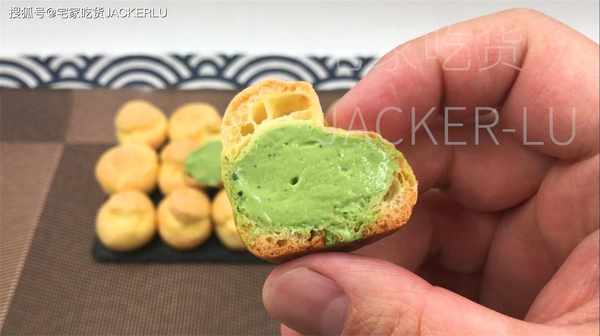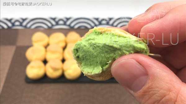 17、輕輕咬下去,抹茶奶油和蓬松的泡芙融合在一起,散發出濃鬱的抹茶香氣,讓人感到幸福。