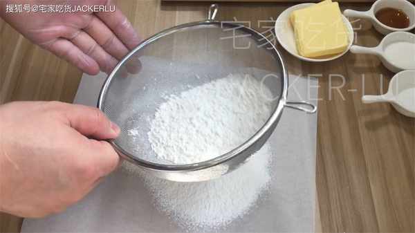 1、先把低筋面粉130克,過篩備用。