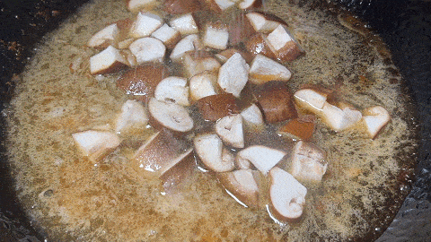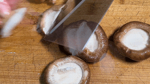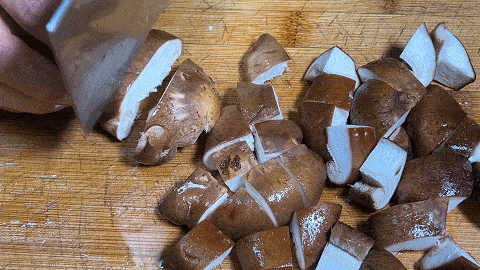 7. 香菇擇洗幹凈,放在案板上去蒂切成塊狀