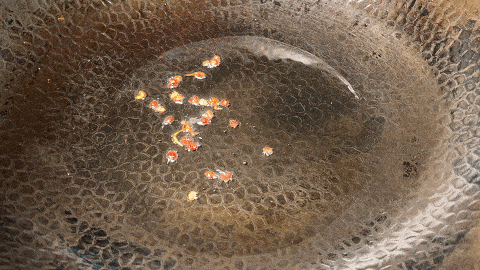 9. 起鍋加入植物油,油熱下入花椒和八角爆香
