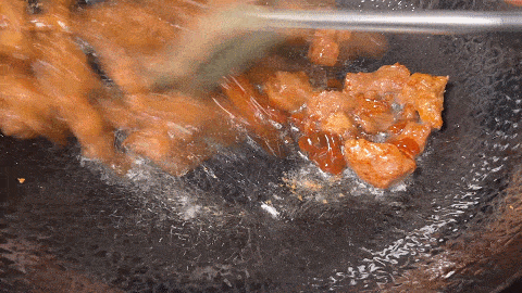11. 將肉塊炒至變色,加入一勺黃豆醬炒出醬香味