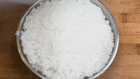 20. 將蒸好的米飯盛到碗中摁一下,上面扣一個盤中,然後翻過來