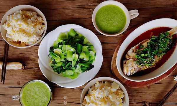 春天的餐桌有綠色,感覺就有瞭濃濃的春的氣息。煮米飯加些粗糧、雜糧營養全面,一葷一素清淡適口,做法簡單快手,一杯翠綠的芹菜汁香氣清新,一桌滿滿的春意。