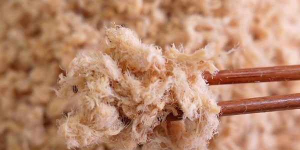 這道肉松口味主要是咸口的,也加入瞭白糖調和,看個人口味的選擇。原材料是豬肉,部位是裡脊肉,這個部位肉質最嫩,炒出來的肉絲松散有嚼勁。三斤的裡脊肉大概能出一斤左右的肉松。能吃上好久瞭。自己做的有優點也有缺點,優點是不加任何添加劑,缺點就是不耐放,做多瞭吃不完就可惜瞭。一定要抓緊吃完,每個地方氣候不一樣,變質的時間也不一樣,最好是密封保存,能在一個月內吃完最好。